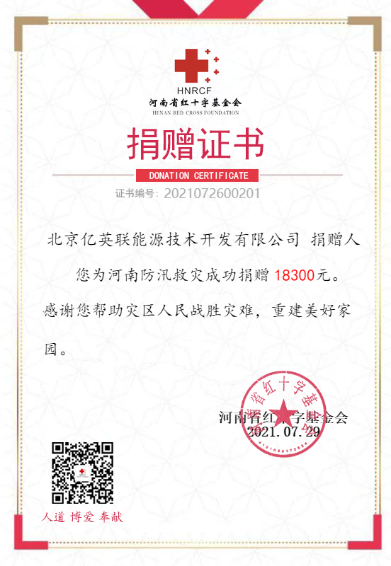 Donation for Flood Control and Disaster Relief in Henan Province, China